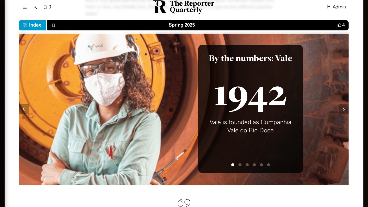 Digital magazine The Reporter Quarterly is vital for keeping 4,700 global employees aware and connected with strategy, successes and trending issues at international law firm, White & Case. It helps to build a sense of togetherness and pride in the Firm, and to demonstrate their values in action.
